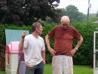 We all came out and watched for a while in the rain, trying to keep well out of the way. Marigold had to be held because she was afraid of the back hoe. She worked on saying 'back hoe' all day. What a helpful word to have on hand. Last night she worked hard on saying 'pizza cutter.' Language is so interesting.